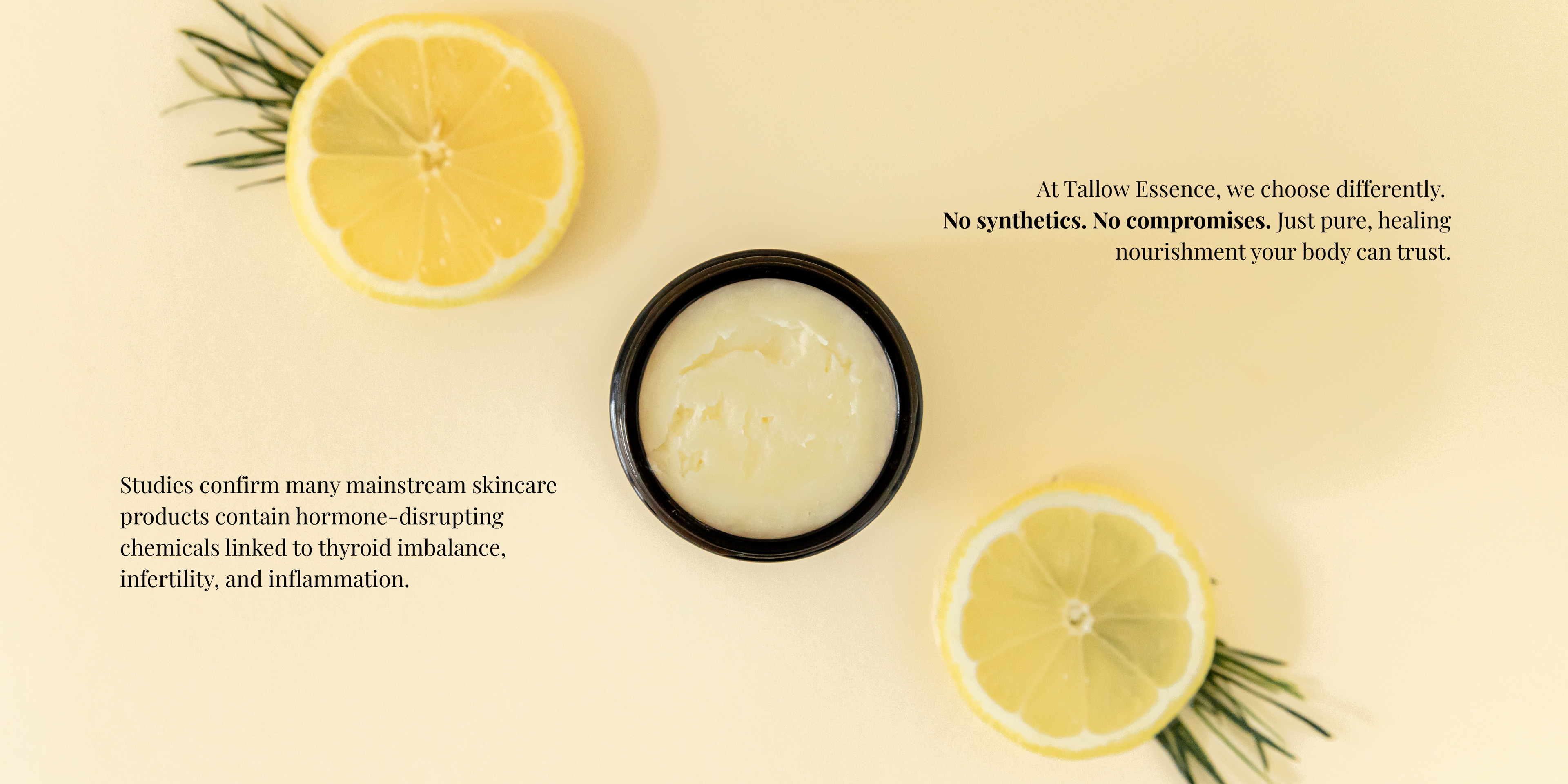 Unlike conventional skincare filled with synthetic ingredients, tallow absorbs easily and helps restore the skin barrier making it ideal for dry, sensitive, or irritated skin.