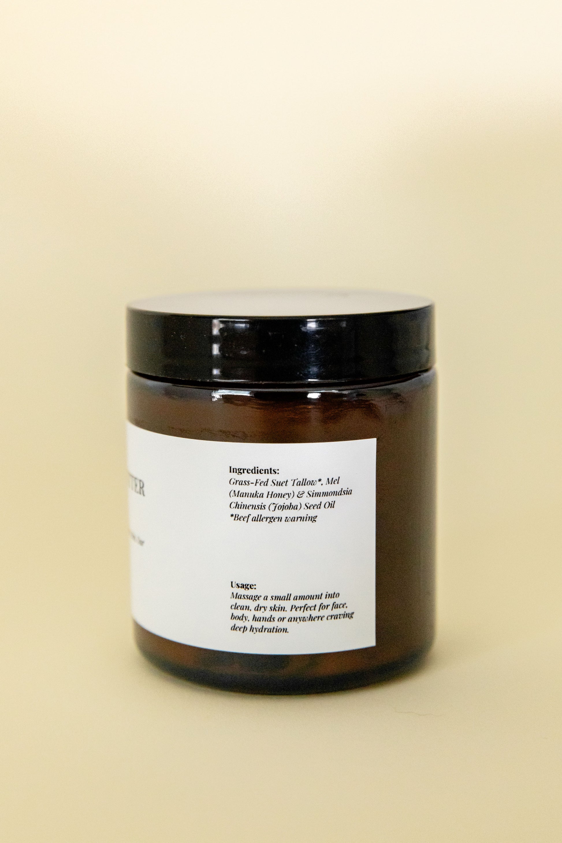 Experience deep nourishment with our Manuka Honey Face and Body Butter, a luxurious blend of grass-fed suet tallow and raw Manuka honey. This ancestral formula delivers intense hydration and soothing relief, making it ideal for dry, sensitive, or eczema-prone skin. Free from synthetic ingredients, it's your natural solution for radiant, healthy skin.
