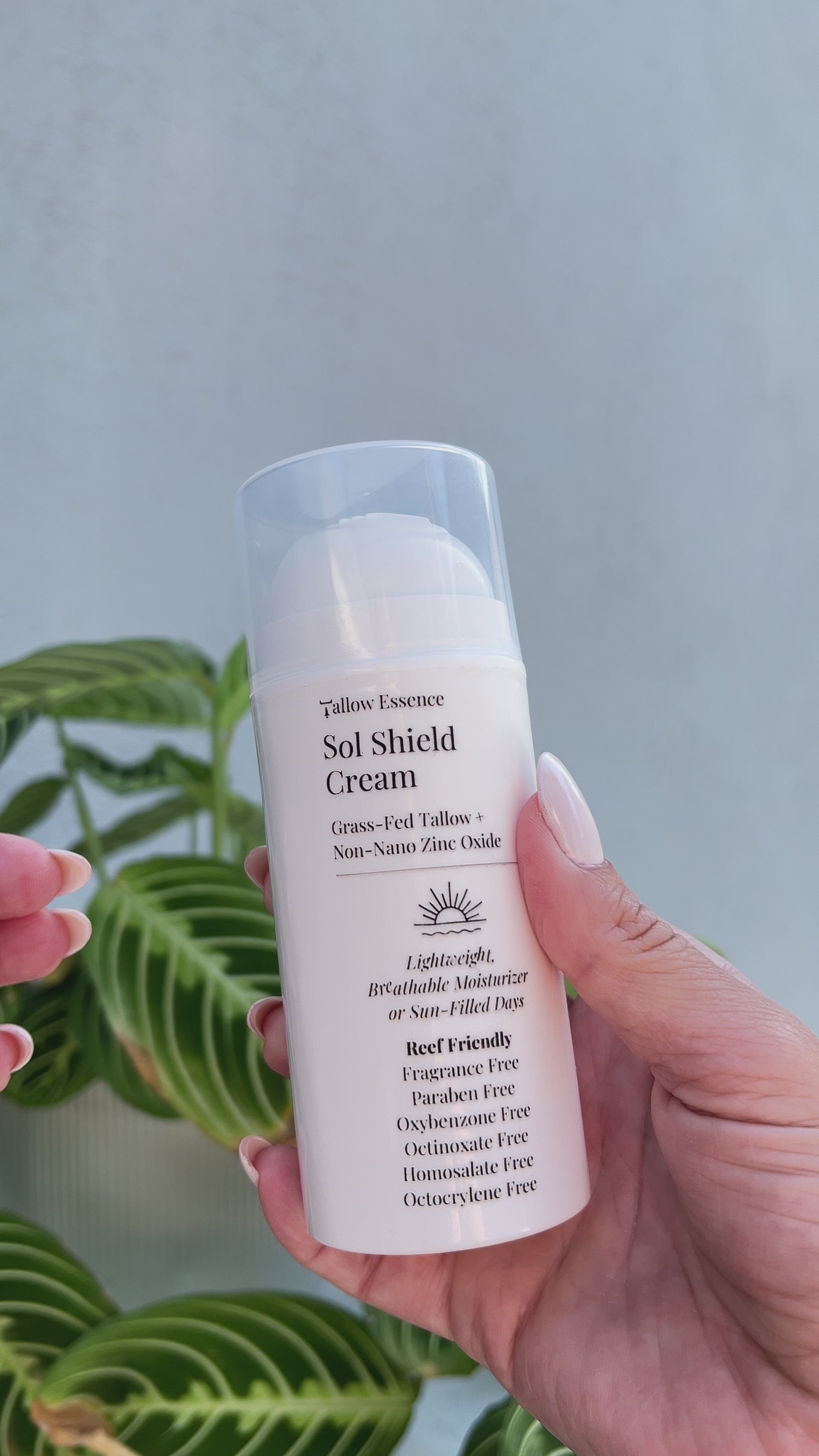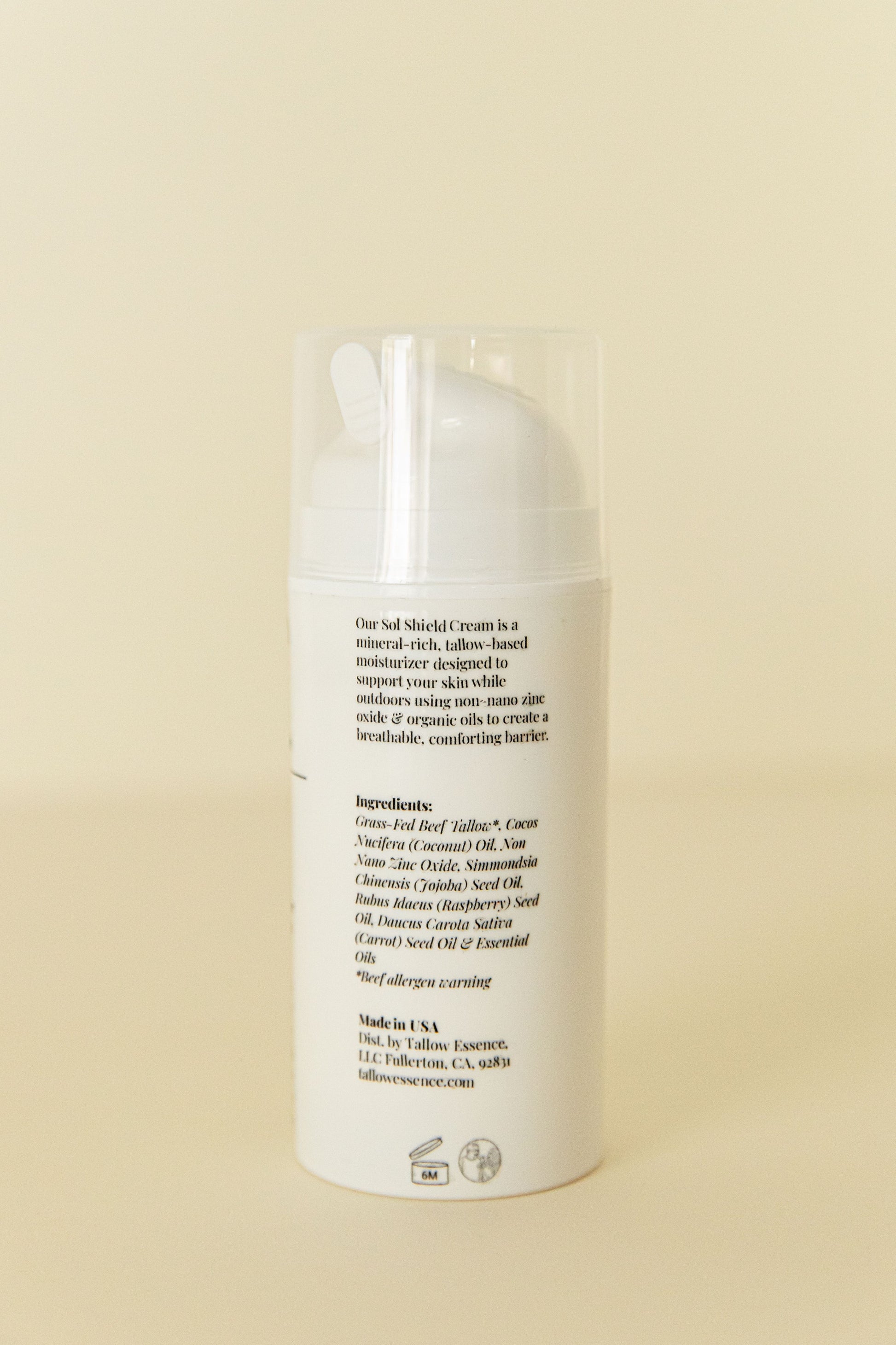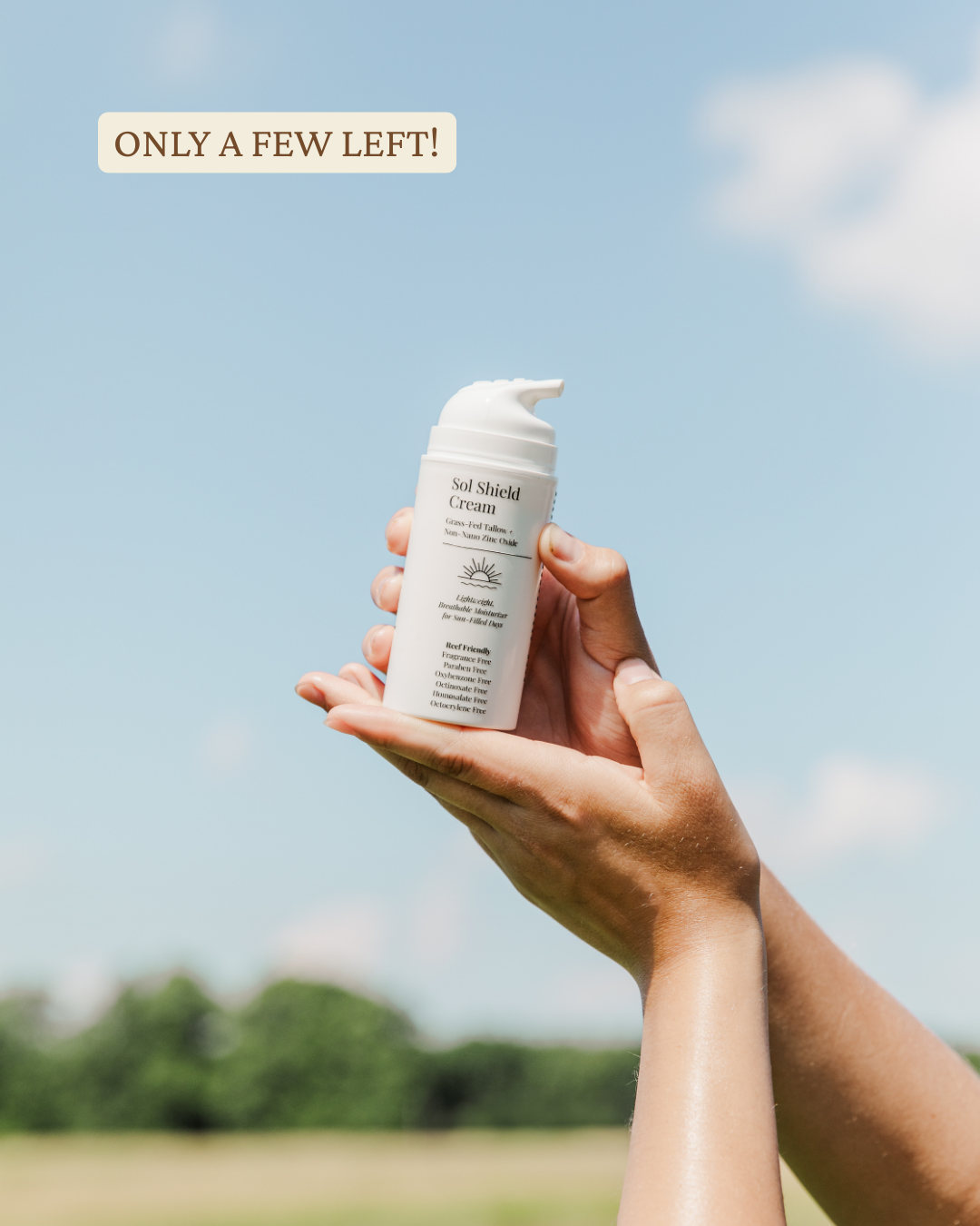 Our Sol Shield Cream is a lightweight, mineral-rich moisturizer crafted with grass-fed tallow and non-nano zinc oxide to protect and nourish your skin on sun-filled days.